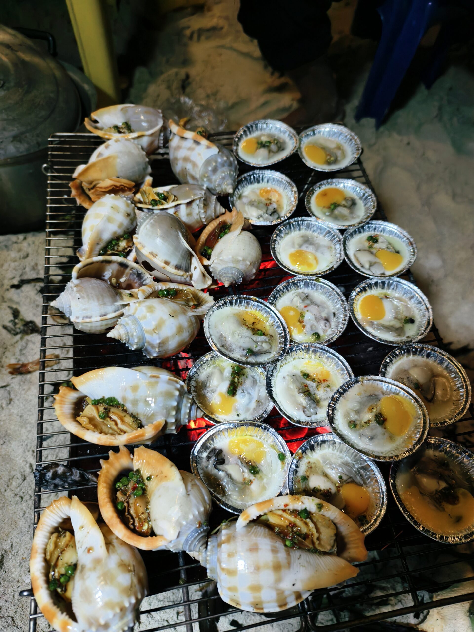 - Tối: Thịt nướng, cá nướng, hàu nướng mỡ hành, canh rong biển, tôm nướng, thịt đà điểu, cơm. (Bao gồm 1 đơn vị bia hoặc nước ngọt/khách).