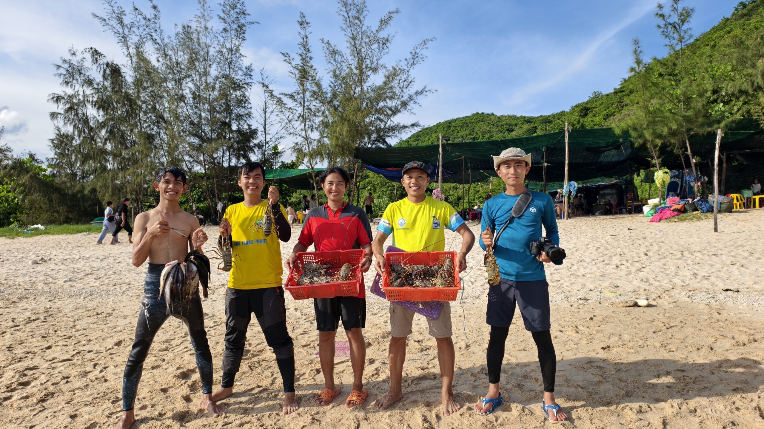 - Tối: Gỏi cá trích tái chanh, thịt nướng, tôm biển hấp, ốc hấp, hàu nướng chén trứng, nhum nướng, salad trộn, canh chua + Cơm trắng hoặc cháo hải sản, bia hoặc nước ngọt 2 phần/người.